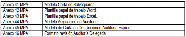 Tabla Nro. 12. Anexos del Manual de Proceso Auditor