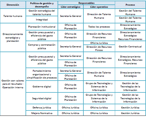 PARÁGRAFO 2o. Líderes operativos. Son líderes operativos los responsables de velar por la ejecución del Plan Operativo Anual, así como de los cronogramas, procedimientos y lineamientos definidos en los procesos asociados a cada dimensión y política.