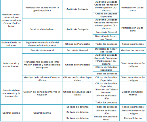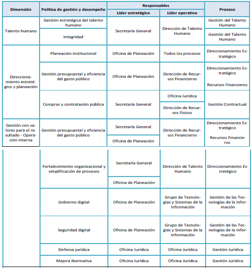 Artículo 7o. - Operación del Sistema de Gestión Integrado (SGI) basado en el Modelo Integrado de Planeación y Gestión (MIPG). Conforme a las dimensiones y políticas institucionales de gestión y desempeño, y a las líneas de defensa del Modelo Estándar de Control Interno (MECI), todos los procesos deben participar en su implementación y operación, bajo el liderazgo y el acompañamiento de la Oficina de Planeación, así: