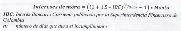 Las sanciones pecuniarias se calcularán tomando el interés generado sobre el valor nominal de la operación a la tasa de interés (en términos efectivos y vigente en la fecha original de presentación de las ofertas) más el margen respectivo, por un número de días. La sanción pecuniaria se calculará aplicando la siguiente fórmula matemática: