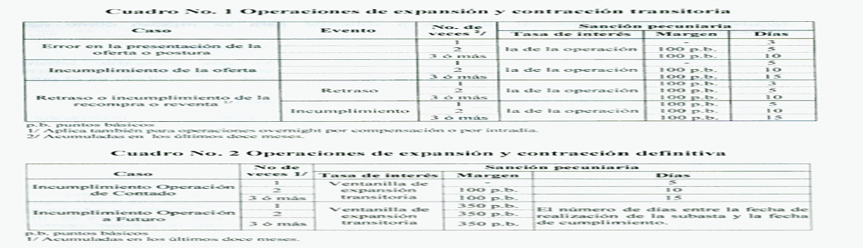 Las sancione pecuniarias para las operaciones de expansión y contracción transitoria y definitiva se señalan a continuación: