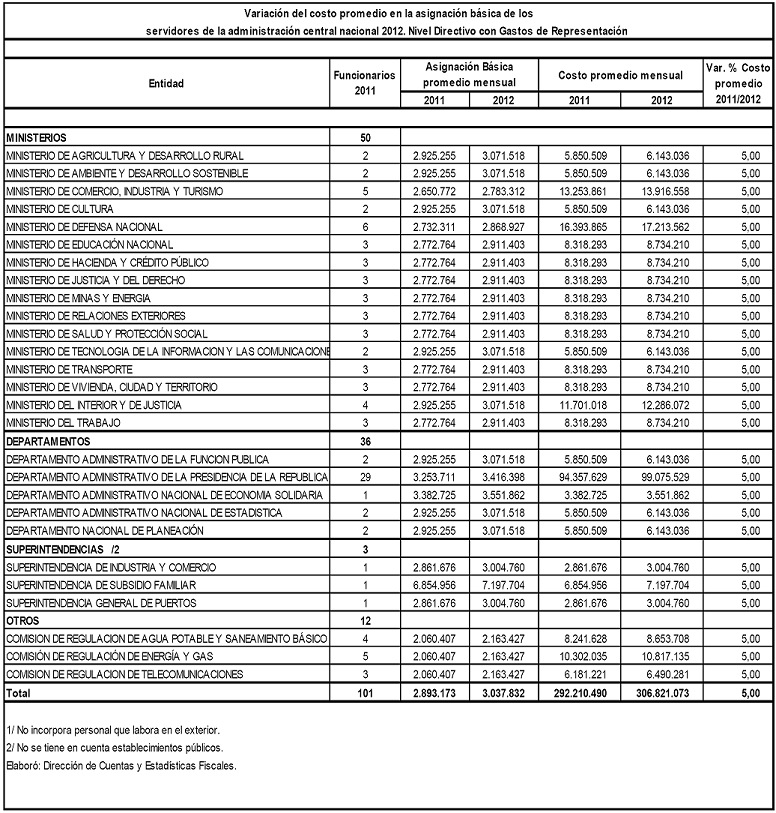 ARTÍCULO 1o. Certificar que el promedio ponderado de los cambios ocurridos en la remuneración de los servidores de la administración central nacional para la vigencia 2012 es de 5,00% (cinco por ciento), conforme a los considerandos de la presente resolución.