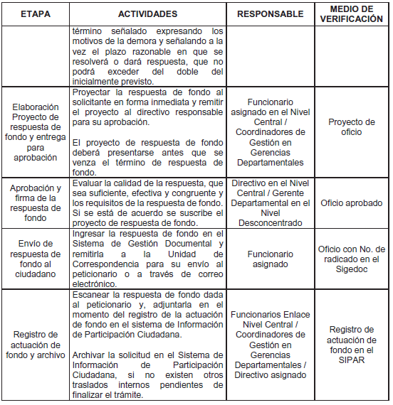 La respuesta de fondo que corresponde emitir a las dependencias en el nivel central o a las gerencias departamentales en el nivel desconcentrado de la CGR se rige por las disposiciones y procedimientos preestablecidos para cada una de ellas, y lo que genera el derecho de petición es la activación de operaciones internas en cada dependencia.