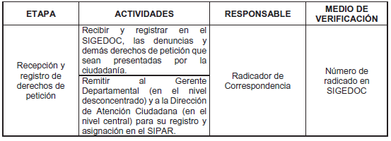 9.2.1.1 Etapa de recepción y registro de derechos de petición.
