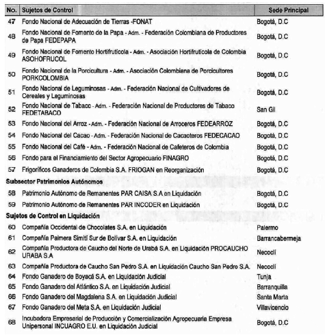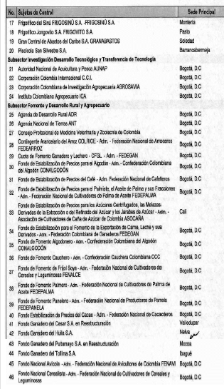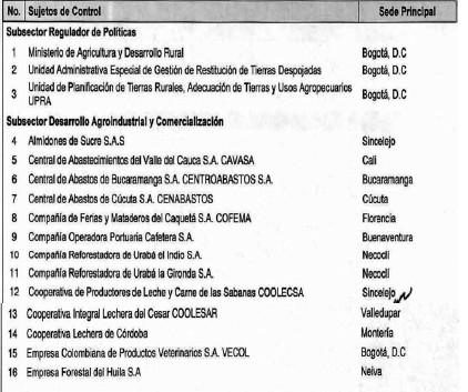 ARTÍCULO 2o. CONTRALORÍA DELEGADA PARA EL SECTOR AGROPECUARIO. <Resolución derogada por el artículo 30 de la Resolución REG-EJE-0073 de 2020> La Contraloría Delegada para el Sector Agropecuario, será competente para ejercer vigilancia y control fiscal a los siguientes sujetos de control: