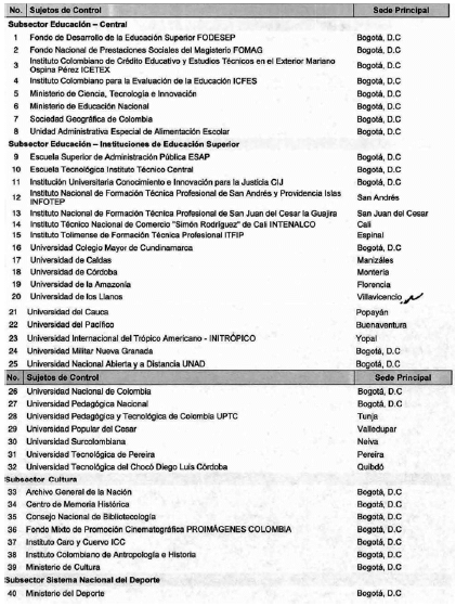 ARTÍCULO 6o. CONTRALORÍA PARA EL SECTOR EDUCACIÓN, CIENCIA Y TECNOLOGÍA, CULTURA, RECREACIÓN Y DEPORTE. <Resolución derogada por el artículo 30 de la Resolución REG-EJE-0073 de 2020> La Contraloría Delegada para el Sector Educación, Ciencia y Tecnología, Cultura, Recreación y Deporte será competente para ejercer la vigilancia y el control fiscal a los siguientes sujetos de control: