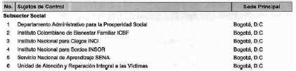 ARTÍCULO 8o. CONTRALORÍA PARA EL SECTOR INCLUSIÓN SOCIAL. <Resolución derogada por el artículo 30 de la Resolución REG-EJE-0073 de 2020> La Contraloría Delegada para el Sector Inclusión Social, será competente para ejercer vigilancia y control fiscal a los siguientes sujetos de control:
