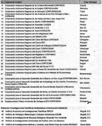 ARTÍCULO 11. CONTRALORÍA DELEGADA PARA EL MEDIO AMBIENTE. <Resolución derogada por el artículo 30 de la Resolución REG-EJE-0073 de 2020> La Contraloría Delegada para el Medio Ambiente será competente para ejercer la vigilancia y el control fiscal a los s iguientes sujetos de control:
