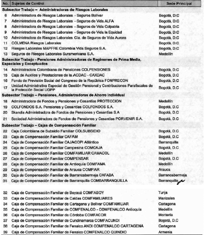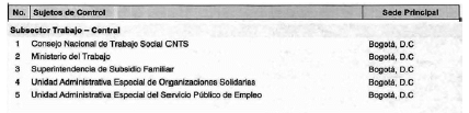 ARTÍCULO 14. CONTRALORÍA DELEGADA PARA EL SECTOR TRABAJO. <Resolución derogada por el artículo 30 de la Resolución REG-EJE-0073 de 2020> La Contraloría Delegada para el Sector Trabajo será competente para ejercer la vigilancia y el control fiscal a los siguientes sujetos de control: