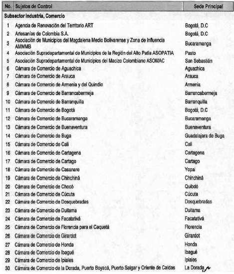 ARTÍCULO 3o. CONTRALORÍA DELEGADA PARA EL SECTOR COMERCIO Y DESARROLLO REGIONAL. <Resolución derogada por el artículo 30 de la Resolución REG-EJE-0073 de 2020> La Contraloría Delegada para el Sector Comercio y Desarrollo Regional será competente para ejercer la vigilancia y el control fiscal a los siguientes sujetos de control: