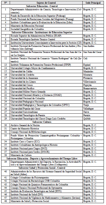 Que el Decreto-ley 267 de 2000 en el artículo 4o, señala: “Son sujetos de vigilancia y control fiscal por parte de la Contraloría General de República: 1. Los órganos que integran las Ramas Legislativa y Judicial del Poder Público. 2. Los órganos que integran el Ministerio Público y sus entidades adscritas. 3. Los órganos que integran la organización electoral y sus entidades adscritas o vinculadas. 4. La Comisión Nacional de Televisión y sus entidades adscritas o vinculadas. 5. Las corporaciones autónomas regionales o de desarrollo sostenible. 6. Las universidades estatales autónomas que administren bienes, recursos nacionales o que tengan origen en la nación. 7. El Banco de la República cuando administre recursos de la nación, ejecute actos o cumpla actividades de gestión fiscal y en la medida en que lo haga. 8. Los demás organismos públicos creados o autorizados por la Constitución con régimen de autonomía. 9. Las entidades u organismos que integran la Rama Ejecutiva del Poder Público tanto del sector central como del descentralizado por servicios, del orden nacional, conforme a lo previsto en el artículo 38 de la Ley 489 de 1998. 10. Las demás entidades públicas y territoriales que administren bienes o recursos nacionales o que tengan origen en la nación. 11. Las corporaciones, asociaciones y fundaciones mixtas cuando quiera que administren recursos de la nación; y 12. Los particulares que cumplan funciones públicas, respecto de los bienes públicos que obtengan o administren o cuando manejen bienes o recursos de la nación.”