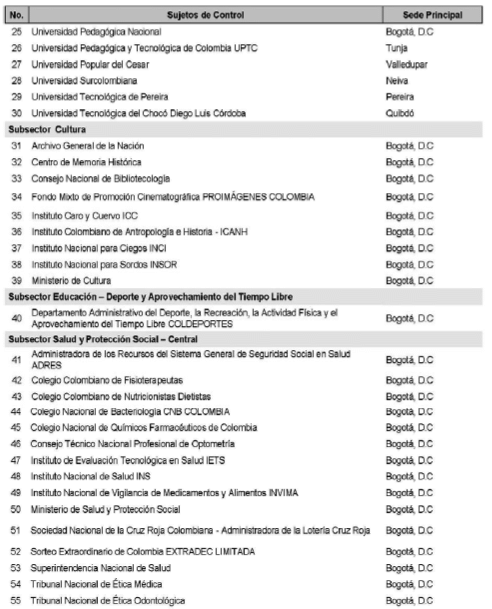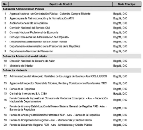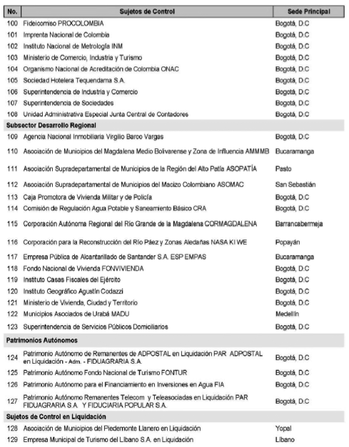 SECTORIZACIÓN DE LOS SUJETOS DE CONTROL FISCAL Y ASIGNACIÓN DE LA COMPETENCIA EN LAS CONTRALORÍAS DELEGADAS SECTORIALES.