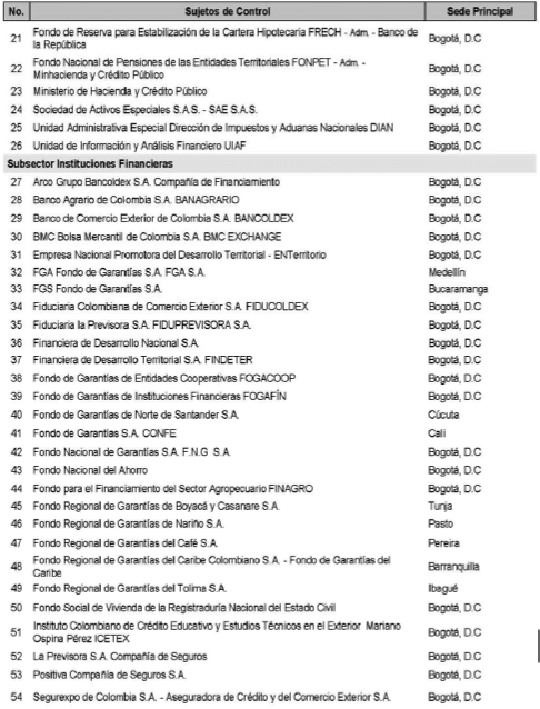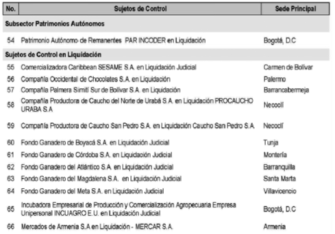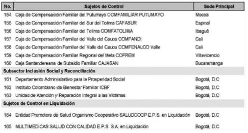 SUJETOS DE CONTROL EN PROCESO DE LIQUIDACIÓN.