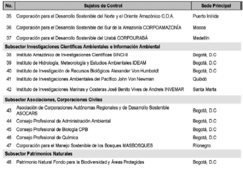 ARTÍCULO 3o. CONTRALORÍA DELEGADA PARA EL MEDIO AMBIENTE. <Resolución derogada por el artículo 31 de la Resolución 62 de 2020> La Contraloría Delegada para el Medio Ambiente será competente para ejercer la vigilancia y el control fiscal a los siguientes sujetos de control: