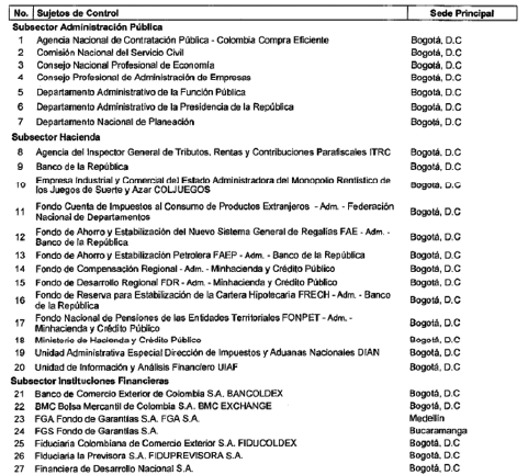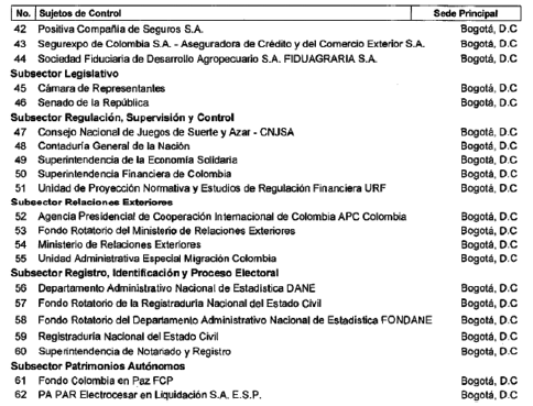- Establece el artículo 1 de la Resolución REG-EJE-0083 de 2021, 'por la cual se modifica parcialmente la Resolución Reglamentaria Ejecutiva número 073 de 2020', publicada en el Diario Oficial No. 51.651 de 20 de abril de 2021: '(...) excluir al Fondo Social de Vivienda de la Registraduría Nacional del Estado Civil, del Subsector Instituciones Financieras, como sujeto de control fiscal de la Contraloría Delegada para el Sector Gestión Pública e Instituciones Financieras para ser incluido en la Contraloría Delegada para el Sector Infraestructura, en el subsector otros sujetos de control.' - Establece el artículo 1 de la Resolución REG-EJE-0082 de 2021, 'por la cual se modifica parcialmente la Resolución Reglamentaria Ejecutiva número 073 de 2020', publicada en el Diario Oficial No. 51.646 de 15 de abril de 2021. '(...) excluir a la Registraduría Nacional del Estado Civil y al Fondo Rotatorio de la Registraduría Nacional del Estado Civil, del Subsector Registro, Identificación y Proceso Electoral, como sujetos de control de la Contraloría Delegada para el Sector Gestión Pública e Instituciones Financieras para ser vigilados por la Contraloría Delegada para el Sector Infraestructura, en el subsector otros. ' |