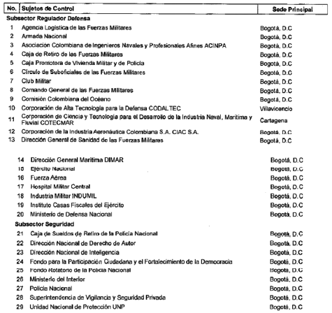 ARTÍCULO 5o. CONTRALORÍA PARA EL SECTOR DEFENSA Y SEGURIDAD. <Resolución derogada por el artículo 32 de la Resolución REJ-EJE-0088 de 2021> La Contraloría Delegada para el Sector Defensa y Seguridad será competente para ejercer la vigilancia y el control fiscal a los siguientes sujetos de control:
