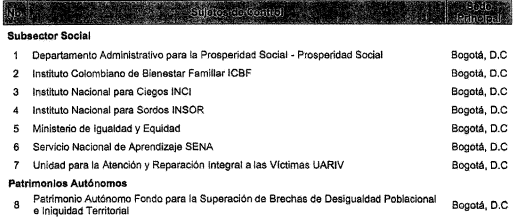 - La Contraloría Delegada para el Sector Inclusión Social ejercerá la vigilancia y control fiscal a los recursos del SGP referente a las Asignaciones Especiales (Resguardos Indígenas, Ribereños y FONPET) y a los recursos de Propósito General, Ubre Destinación y Libre Inversión.