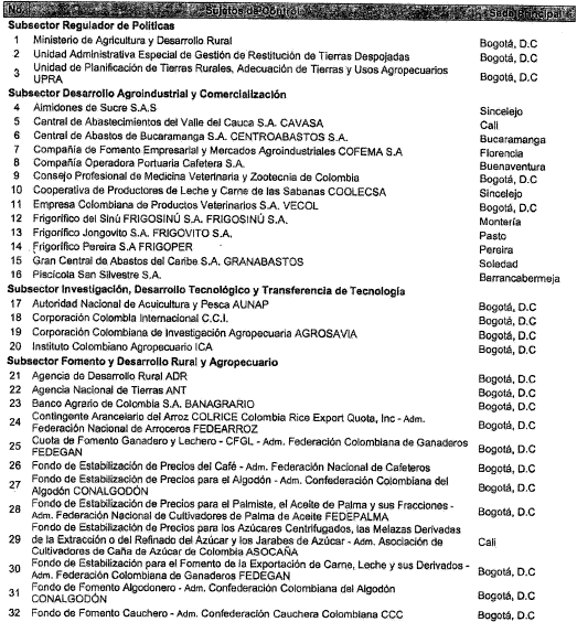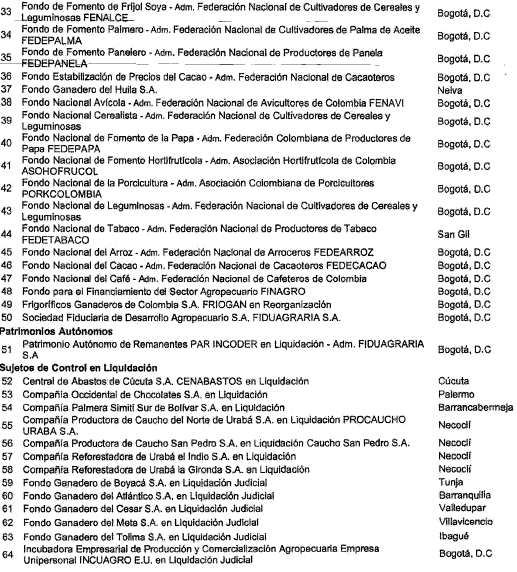 ARTÍCULO 2o. CONTRALORÍA DELEGADA PARA EL SECTOR AGROPECUARIO. La Contraloría Delegada para el Sector Agropecuario será competente para ejercer vigilancia y control fiscal a las siguientes entidades: