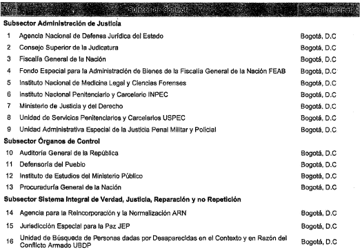 ARTÍCULO 10. CONTRALORÍA DELEGADA PARA EL SECTOR JUSTICIA. La Contraloría Delegada para el Sector Justicia será competente para ejercer la vigilancia y el control fiscal a las siguientes entidades: