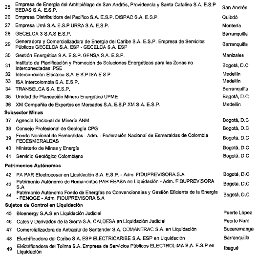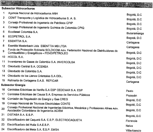 ARTÍCULO 12. CONTRALORÍA DELEGADA PARA EL SECTOR MINAS Y ENERGÍA. La Contraloría Delegada para el Sector Minas y Energía será competente para ejercer la vigilancia y el control fiscal a las siguientes entidades: