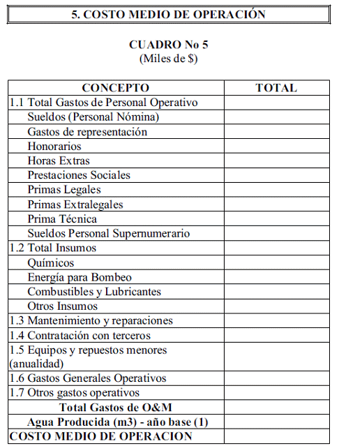 Costo Medio Operacional de Alcantarillado (CMO). Es el precio por metro cúbico de agua vertida ($/m3) calculado a partir de los gastos de operación, en un año base, asociados con el volumen de vertimiento de ese año.