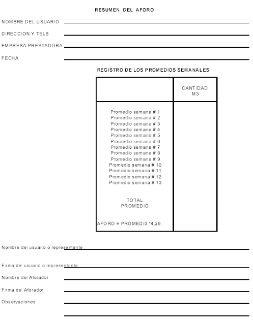 Aforo de agua. Es el procedimiento por medio del cual se mide o estima la cantidad de agua que normalmente utiliza un usuario.