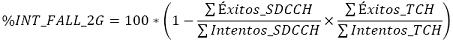 | 1 | Porcentaje total de llamadas caídas en 2G. |