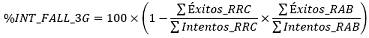 | 2 | Porcentaje total de llamadas caídas en 3G. |