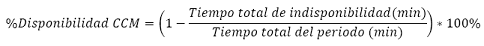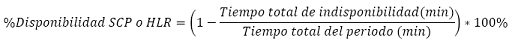 7. Porcentaje de disponibilidad mensual: Es igual al 100% menos la relación porcentual entre la cantidad de minutos en los que el elemento de red no estuvo disponible en el mes de reporte (columna 5), y la cantidad total de minutos del periodo de reporte.