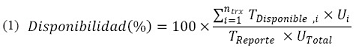 | -- T Disponible, i: | tiempo en servicio del transmisor en el semestre reportado. |