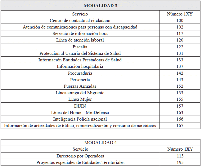 f) Servicios especiales de información y/o servicio de emergencia, independientemente si tienen o no costo para el usuario;