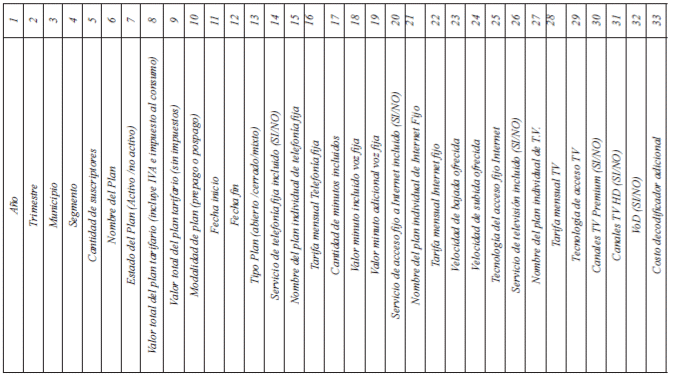 22. Tarifa mensual Internet fijo: Corresponde a la tarifa en pesos colombianos que debe pagar el usuario por el servicio de acceso fijo a Internet sin incluir impuestos.
