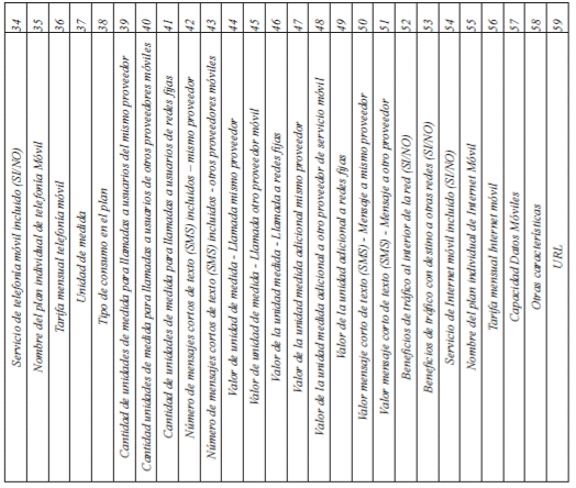 36. Tarifa mensual telefonía móvil: Corresponde a la tarifa en pesos colombianos que debe pagar el usuario por el servicio de telefonía móvil sin incluir impuestos.