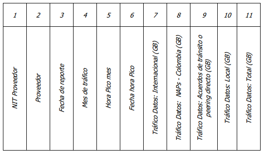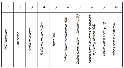 (4) FECHA DEL DÍA DEL TRÁFICO: Corresponde a la fecha del día en la que se cursó el tráfico de Internet que se está reportando en el presente Formato. Esta fecha deberá guardar el formato aaaa/mm/dd. Debe enviarse un dato de tráfico por cada día reportado. Por ejemplo, si se está haciendo el reporte del lunes, este debe contener tres filas para incluir el tráfico del viernes, del sábado y del domingo.