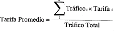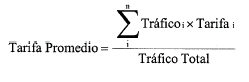 "i" indica el valor de la tarifa desde el nodo de interconexión hasta cada destino, y n es el número de destinos o bandas.