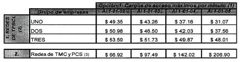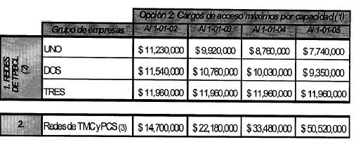 Nota: Las empresas de TPBCL que no se encuentren en este listado deberán aplicar como tope los valores de cargos de acceso por uso o por capacidad que correspondan al operador de TPBCL que concurra en el respectivo mercado en que operen.