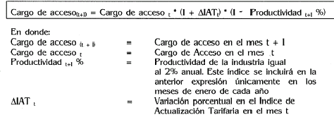 1. Cálculo del Indice de Actualización Tarifaria (IAT). Los valores de los cargos de acceso previstos en la presente disposición, se reajustarán utilizando el Indice de Actualización Tarifaria detallado a continuación:
