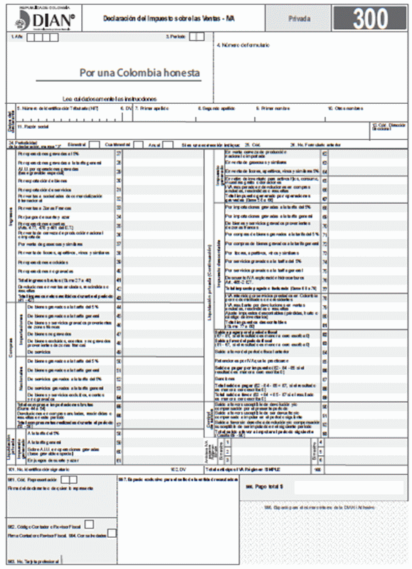 La Unidad Administrativa Especial Dirección de Impuestos y Aduanas Nacionales (DIAN) pondrá a disposición el Formulario Modelo número 300 en forma virtual en la página web, www.dian.gov.co, para su diligenciamiento, presentación y pago, o para su diligenciamiento en el sistema y posterior presentación ante las entidades autorizadas para recaudar.