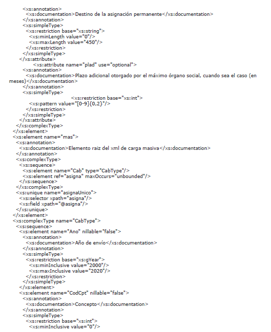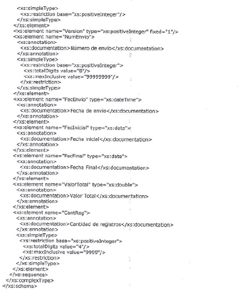A continuación, se incluye el esquema XSD para esta especificación técnica.