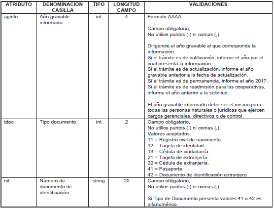 - Los campos concepto, formato y versión, debenvenirdiligenciadoscon losvalores estipulados en las especificaciones técnicas.