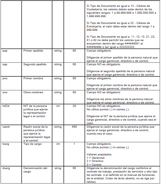 | mmmmm: | Código del formato en cinco dígitos Formato (Información de personas que ejercen cargos gerenciales, directivos o de control = 02531). |