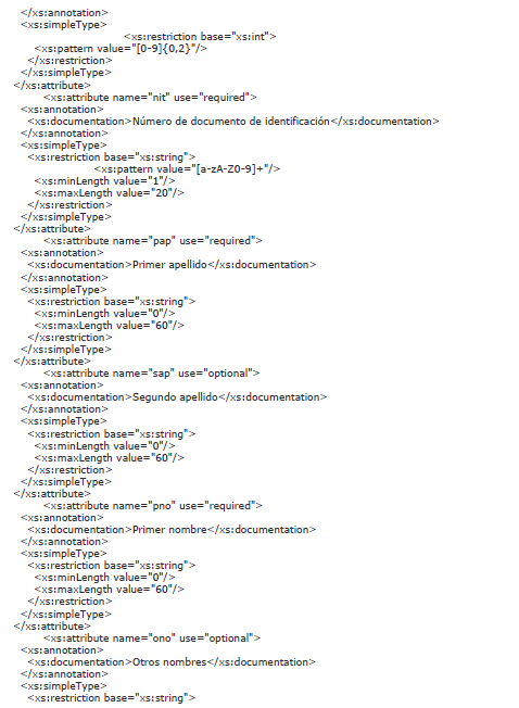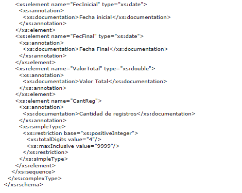 A continuación, se Incluye el esquema XSD para esta especificación técnica.