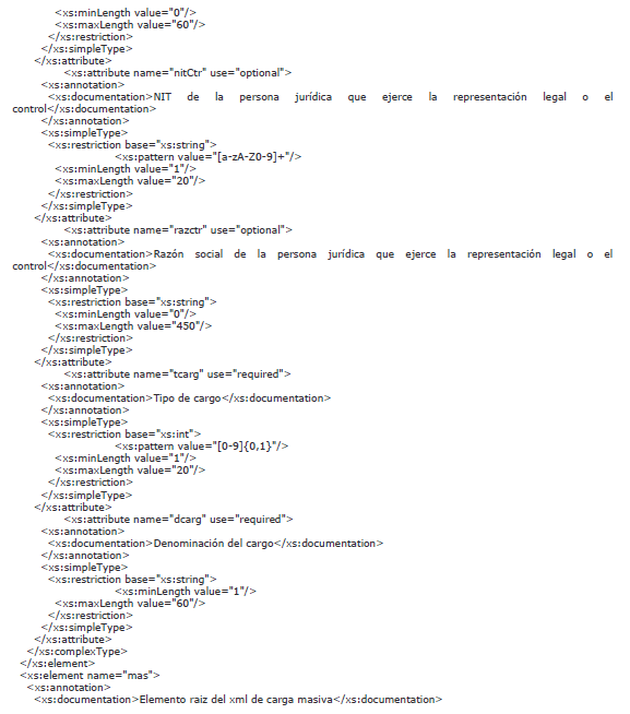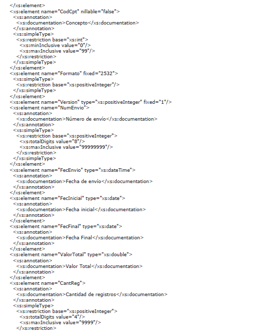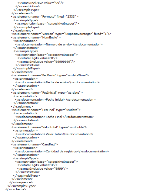 - La Información del contenido del archivo debe corresponder al esquema XSD entregado.