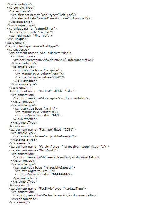 El encabezado del archivo viene en el elemento “Cab” y contiene los siguientes datos, todos de carácter obligatorio: