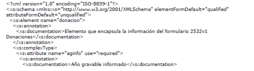 El formato 2532 - Información de Donaciones y recursos de Cooperación Internacional no reembolsables, debe enviarse en uno o varios archivos XML que cumplan las siguientes especificaciones: