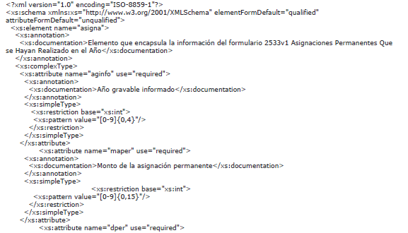 El formato 2533- Información de asignaciones permanentes que se hayan realizado en el año, debe enviarse en uno o varios archivos XML que cumplan las siguientes especificaciones: