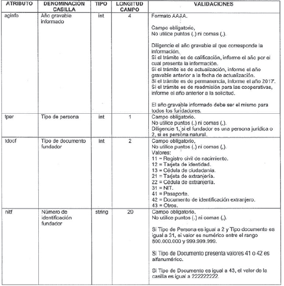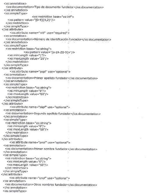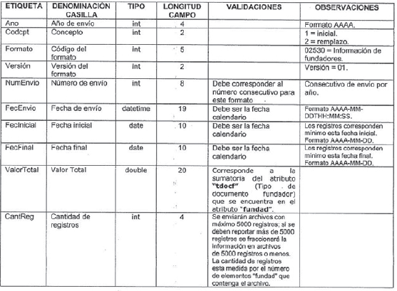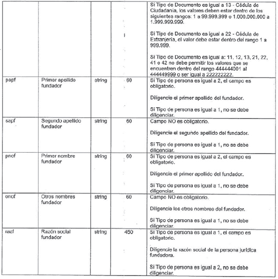 En el contenido del archivo viene el elemento “fundad” y se deben Incluir los siguientes datos para cada registro de fundador.