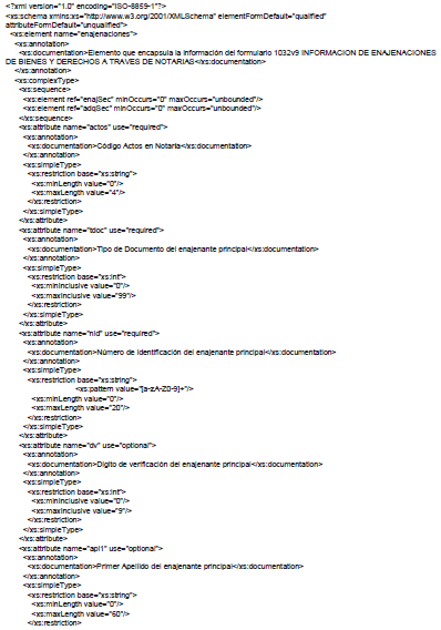 A continuación, se incluye el esquema XSD para esta especificación técnica