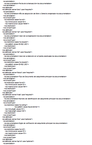 | dve | DV del enajenante secundario | int | 1 | Para el tipo de documento 31 Nit, si se conoce debe diligenciarse |