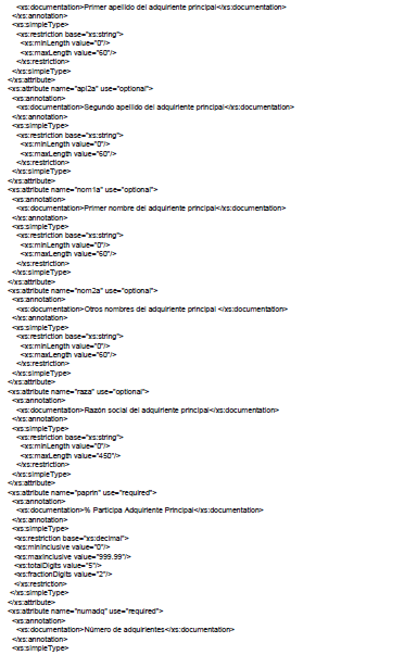 | apl2as | Segundo apellido del adquiriente secundario | string | 60 | En caso de ser una Persona Natural y si se conoce debe diligenciarse |
